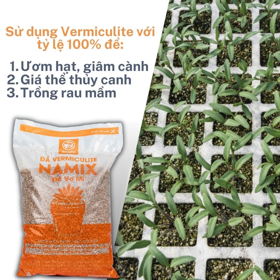 Đá vermiculite có khả năng giữ nước rất tốt, đồng thời cũng nhẹ và tơi xốp nên không hề nén rễ. Dùng đá vơ mi làm giá đỡ vừa giúp cây đứng vững, vừa trang trí và giữ nước cho cây. Ngoài trồng cây theo bán thủy canh, đá vơ mi còn có thể sử dngj để giâm cành, gieo hạt, với khả năng giữ ẩm tốt, hạt và càn giâm sẽ được cũng cấp đầy đủ nước để nhanh ra rễ hơn.