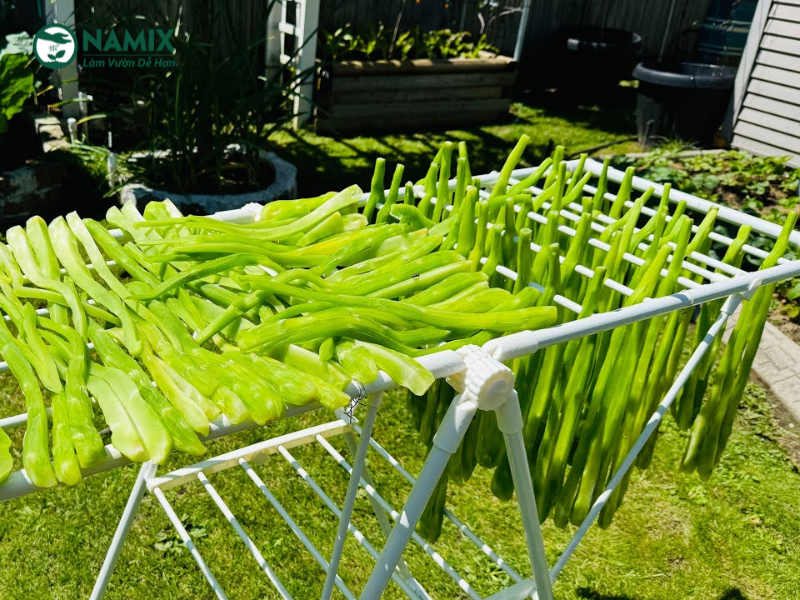 Một mẹo nhỏ được chia sẻ từ người trồng kinh nghiệm: “Nếu muốn rau tiến vua khô có màu đẹp, sau khi phơi nên để nguội hoàn toàn rồi mới đóng gói. Làm vậy rau không bị thâm và giữ hương vị lâu hơn.”