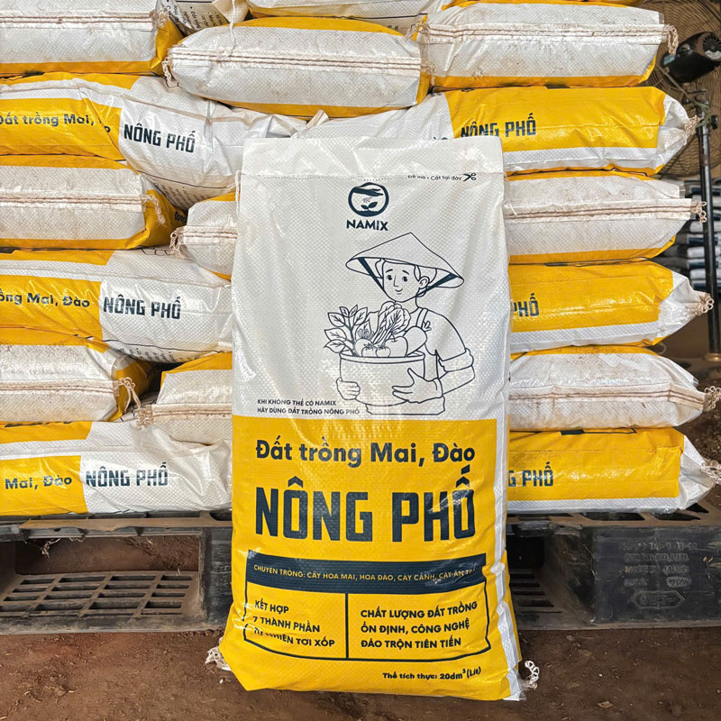 Đất trồng Mai, Đào NÔNG PHỐ là loại đất trồng chất lượng tốt, có thể dùng để trồng cây cảnh, cây lâu năm như cây mai, cây đào,… Đây là một trong những dòng đất chuyên dụng của nhà sản xuất đất trồng NAMIX, có giá thành hợp lý mà bạn có thể tham khảo.